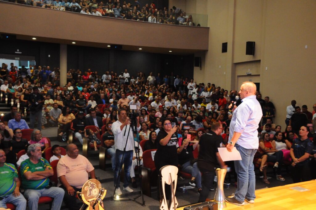 Centenas de atletas de 26 modalidades foram homenageados na noite desta segunda-feira, 4 , pela Prefeitura de Aparecida de Goiânia, na 6ª edição do Prêmio Melhores do Esporte durante solenidade realizada pela Secretaria de Esporte, Lazer e Juventude no Anfiteatro Municipal Cantor Leandro no Setor Village Garavelo. Durante o evento, o prefeito Vilmar Mariano, e o secretário Gerfeson Aragão parabenizaram e reconheceram a dedicação de cada um dos atletas que representaram a cidade em competições estaduais, nacionais e internacionais em 2023.