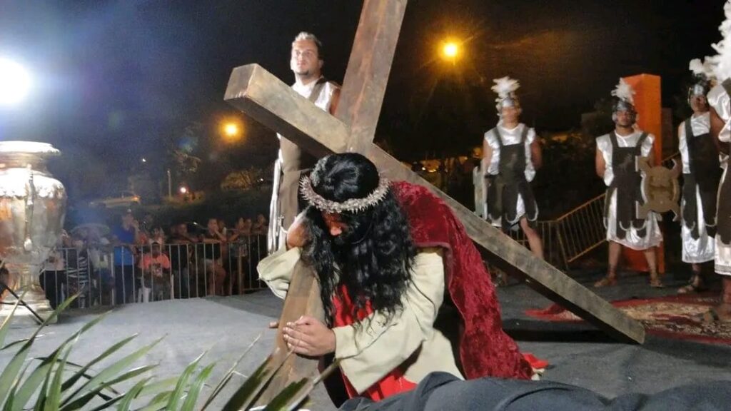 Será realizada na sexta-feira, 29, sexta-feira da Paixão, a tradicional encenação da Via Sacra promovida há 38 anos pelos jovens Católicos das Paroquias da Região do Colina Azul l. O evento acontecerá no campo de futebol do Jardim Riviera, na Avenida Teotônio Vilela, a partir das 17h. O espetáculo cristão é encenado por 150 atores e coordenado pelo Grupo Teatral Repensar e conta com apoio da Prefeitura de Aparecida de Goiânia.