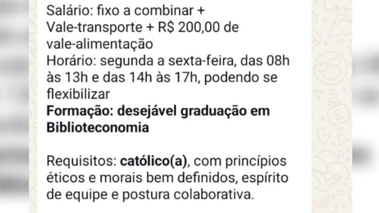 Anúncio foi criticado por profissionais da área e especialistas em Direito, que apontam ilegalidade da exigência religiosa Um colégio particular de Goiânia