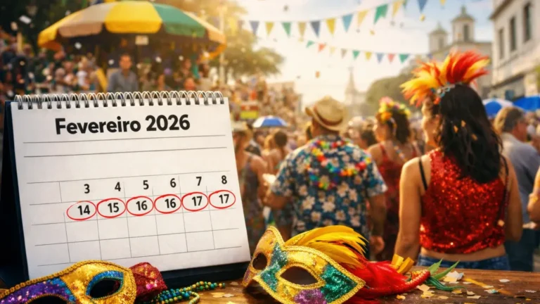 Folia acontece entre 14 e 17 de fevereiro e altera a rotina em boa parte do país, com pontos facultativos e expediente