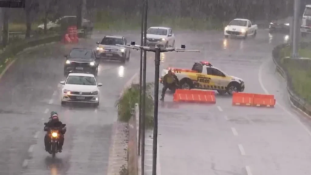 A chuva, apesar de breve, chamou a atenção pela intensidade e reforçou o alerta para mudanças rápidas nas condições do tempo, comuns nesta época do ano na região metropolitana.