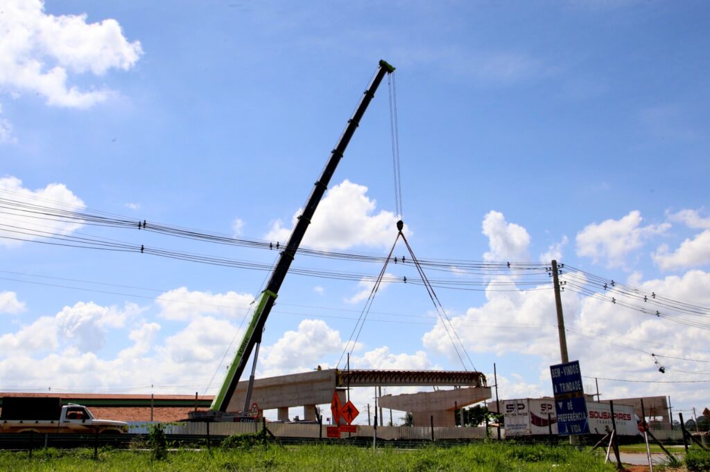 A obra do viaduto no acesso à entrada de Trindade, na GO-O60, em frente ao Portal da Fé, entrou numa nova fase na manhã desta sexta-feira (19/04). Foi instalada a primeira das 18 vigas de sustentação que farão parte da infraestrutura.