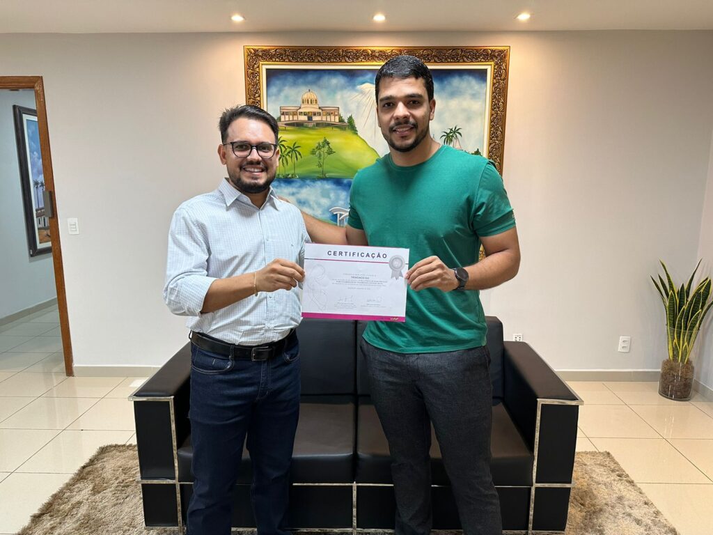 “Nos tornamos referência em saúde pública e aqui estou para agradecer à nossa equipe de trabalho, que atua firme para que estejamos sempre em primeiro lugar. Minha gratidão a cada morador de Trindade”, destaca o prefeito Marden Júnior, que recebeu o certificado das mãos do secretário de Saúde, Gustavo Queiróz.